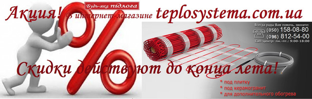 Для покупців інтернет-магазину кліматичної техніки "teplosystema.com.ua" надається ЗНИЖКА на системи електричного статі для укладання під плитку!