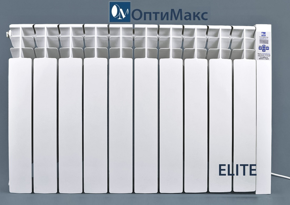 Електричний радіатор (електрородиатор) Оптимакс® ELITE — призначений для повноцінного автономного опалення приміщень будь-якого типу або для допоміжного опалення. Електрорадіатори Оптимакс виробляються двох типів — Elite і Standard. Відмінність між ними полягають у різній комплектації секцій. Радіатор серії Elite має велику площу тепловіддання завдяки масивнішим реберам усередині самої секції. Так, вага однієї секції серії Elite становить 1,7 кг, а Standard — 1,2 кг. Відличити візуально секції нагрівачів серії Elite от Standard дуже просто. Радіатори Elite мають ширину лицьової пластини будь-якої із секцій електрорадіатора 7,5 см, а тильного — 6,2 см. У Standard - відповідно 6,8 і 4 см. Тепловіддача Elite становить 202 Вт, а Standard — 160 Вт, ефективність Elite на 15-20% краща, ніж у Standard. Електрорадіатор простий у встановленні та використанні — компактний і зручний, ви легко можете перемістити нагрівач у зручне для Вас місце обігріваного приміщення — можна легко встановити на стіну або на підставку. Обладнаний програмним терморегулятором.